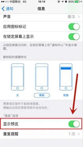 操作方法:打開設置,在【通知信息】中找到信息,然后將【顯示預覽】關閉即可。